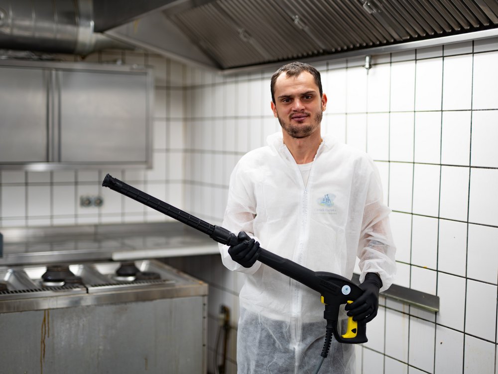 Aus Erfahrung wissen wir: Viele schwer zugängliche Bereiche, wie hinter Geräten oder unter Maschinen, bleiben oft verschmutzt. Genau dort setzen wir an und beseitigen Fett, Schmutz und Rückstände gezielt – sauber, hygienisch und nachhaltig.